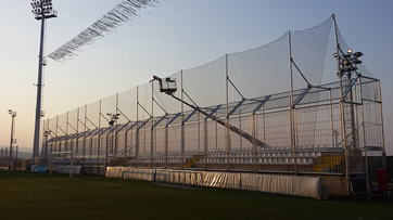 Demontaža zaštitne mreže za navijače sa starog stadiona i montaža na novi stadion auto košarom